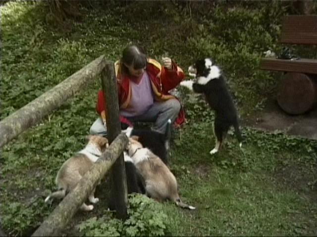 meine Süßen fressen gerade Fleischknochen ab auf unserer Terrasse. Die war zwar gerade noch vom letzten Schauer nass, aber ich habe die ersehnten Leckerbissen trotzdem rausgelegt. Das wäre so nichts besonderes, wenn es nicht gerade im Hintergrund immer wieder kräftig donnern würde. Ich hatte wirklich gemeint, der ein oder andere Welpe würde vor Schreck rein laufen. Cita tat auch mal kurz so, als ob sie's vorhätte, zog es dann aber doch vor, bei den anderen zu bleiben und die Mahlzeit zu genießen. Das Gute an diesem Gewitter: noch regnet es nicht. Wenn es erst einmal wieder wie aus Eimern schüttet - und das wird es heute sicher noch einige Male geben - kommt die Mausimeute ja doch rein. Dann trägt jeder, was er kann und nach der Schleppaktion haben die 5 in der Wurfkiste kaum noch Platz, sich hinzulegen, weil sie alles voll Knochen geräumt haben. Ich lege größten Wert darauf, meine Collie-Welpen in Wind- und Wetter-festem Zustand abzugeben und der heutige Tag ist wirklich gut für entsprechende Übungen. Ein wegen Gewitter durchgehender oder sich nicht aus dem Haus trauender Hund wäre zumindest an solchen Tage wirklich keine Freude! Da gibt es leider genug Beispiele.