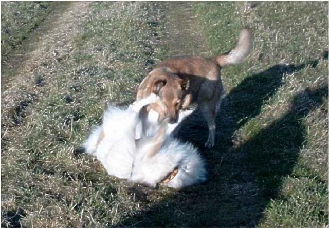 Der "goldige" Scotty hat sich zwischendurch dann an Cira rangeschmissen, aber da er mir schon mal sehr deutlich gezeigt hat, dass er mir haushoch überlegen ist, habe ich ihn gelassen. Aber dann, du wirst es nicht glauben, kommt doch so ein dahergelaufener kleiner Münsterländer (Oskar) und macht sich auch noch an MEINE Cira ran. Nee nee, Freund so haben wir nicht gewettet! Ich habe ihm dann mal so ganz nebenbei meine Schnauze auf den Rücken gelegt und mal elegant meine Zähne kurz aufblitzen lassen. Nein, geschnappt habe ich nicht, aber der soll ruhig wissen, dass das MEINE Hündin ist! Schließlich ist der Oskar ja auch gerade erst ein gutes Jahr alt. Der hat sich bei mir nicht mal vorgestellt, hat sich einfach so auf "unsere" Wiese gesellt, dabei gehört er gar nicht zu unserer "Gang". Also, das ist doch wirklich unverschämt, oder? Tanja hat mich dann weggerufen und meinte, dass ich NUN auch keine "Besitzansprüche" geltend machen dürfe, nachdem ich mich die ganze Zeit nicht um Cira gekümmert habe. Na, die hat vielleicht Nerven.