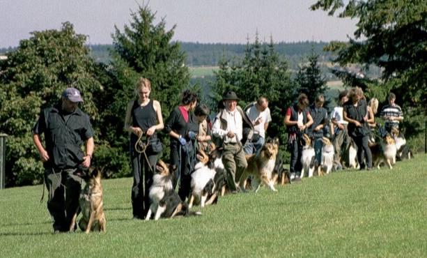 Wir hatten am Anfang des Urlaubs ein Arbeitswochenende und Welpentreff von der Züchterin organisiert.Dabei haben wir eine Gruppenunterordnung gemacht ohne üben vorher.das hat prima geklappt.leider haben wir keinen gemeinschaftlichen Spaziergang gemacht,sondern waren immer nur auf dem Hundeplatz.