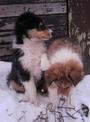 Gudrun + Collie-Rudel mit Collie-Welpen, die aber auch in besonders exponierter Lage wohnen, hoch über Wildemann.