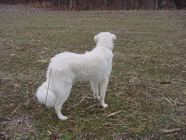 Eines der groessten Probleme bei der Erziehung ist das *komm*, denn Kuvasz sind sehr selbstaendig und manchmal kann man ihnen direkt ansehen, dass sie sich das ganze erstmal ueberlegen. Ich arbeite mit Trooper nur mit positiven Methoden, versuche ihm also zu zeigen, dass es fuer ihn viel interessanter ist, zu mir zu kommen. Das klappt bei ihm schon recht gut, aber ich kenne durch seinen Vorgaenger auch die Kehrseite. Farkas hat bis zum Schluss das Kommen nie so richtig befolgt.