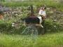 Aron machte anfangs einige "Wuffs!" vor Aufregung und sprang, ohne mein Handzeichen zu beachten, nach meinem "Hopp!" die Trockensteinmauern hinauf mitten durch meine Blümchen! Ich rief ihm sofort "Kehrt!" nach - er also runter, wieder durch meine Blümchen. Jetzt hielt ich ihn an der Mähne fest, bis er mein Handzeichen zu "Hopp!" sah und in die richtige Richtung sprang. Er hatte es begriffen und sprang gleich freiwillig mehrmals hin und her. Dabei machte er noch das ein oder andere aufgeregte "Wuff!" und kassierte jedesmal nach der Landung sein wohlverdientes Trockenfutterbröckchen.
