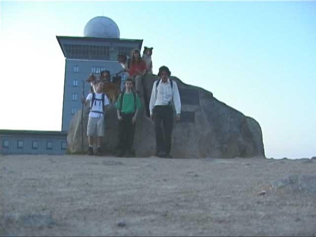 Heute waren wir ab Mittag bis 2:00 Uhr nachts alle zusammen mit unserem Besuch draußen unterwegs. Wir waren erst am Okerstausee gemeinsam mit den Hunden schwimmen. Dabei bekam ich so manchen Kratzer ab, weil die Hunde aus irgendeinem Grund alle mal ausprobieren wollten, ob sie nicht auf meinem Rücken reiten könnten oder mich aus anderen Gründen anpatschten. Die Hunde, die gerade am Ufer standen, kläfften laut vor Aufregung. Aron schwamm insgesamt am wenigsten, spielte sich dafür aber als Wachhund auf, wenn Fremde neugierig zu uns heran kamen. Er stellte und verbellte die Personen, so dass sie sich schnell zurückzogen. Dann fuhren wir zum Marienbruch, von wo aus wir zum Brocken hinaufwanderten - mit 1142 m der höchste Berg im Harz. Wir erreichten den Gipfel in der Abenddämmerung. Der Rückweg im Dunkeln war anstrengend, weil wir die dicken Blöcke auf den oft unebenen, steilen Wegen ertasten mussten. "Laaangsaaam!" war dann das wichtigste Kommando.