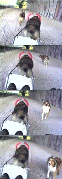 Der Tag verlief ohne besondere Vorkommnisse. Als ich die Hunde abends für ein paar Stunden in die Wohnung holte, gab ich jedem zur Begrüßung ein Trockenfutterbröckchen. Während Aron und Belana ihr Futterbröckchen schnell geschluckt hatten, legte Gladess ihres erst einmal aufs Parkett. Belana, die schon fertig war, wollte es ihr abnehmen. Als Gladess auf ihre gefletschten Zähne nicht reagierte, begann sie zu schnappen. Aber Gladess schnappte zurück - ich ging dazwischen, um die Nachtruhe des Blocks zu retten. Später am Abend patschte Belana mit ihren Vorderpfoten wieder auf Gladess Kopf. Gladess reagierte so wie immer und kraulte Belana ausgiebig hinter den Ohren und am Hals. Nachtragend sind Hunde wirklich nicht.