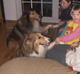 Wegen des schlechten Wetters verlegte ich unsere Trainingstour auf den frühen Nachmittag. Abends hatten wir wieder Besuch mit 2 hundebegeisterten Kindern, 3 und 6 Jahre alt. Aron und Belana sollten parallel Pfötchen geben, was wunderbar klappte, wenn ich die Befehle "gib Pfote!" der Kinder wiederholte, so daß meine Hunde sie verstanden. Auch "Sitz!" mußte ich dolmetschen. Aron und Belana versuchten immer wieder, Küßchen zu verteilen, was ihnen z. T. auch gelang. Da es weder für die Mutter noch für die Kinder ein Problem darstellte, wenn die Hunde mal trafen, hatten alle ihren Spaß.