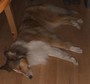 Abends war wieder Rettungshundetraining dran. Aron und Belana machten sämtliche Anzeigen schon laut und ohne Opferhilfe. Danach wurde die Geräuschempfindlichkeit getestet. Nachdem meinen Platz haltenden Hunden alle Arten von Geräusch egal waren, mußten sie einzeln bei Fuß unmittelbar an einer Stahlpalette vorbei, auf die jemand eine schwere Eisenstange genau in dem Moment warf, als ich mit dem bei Fuß gehenden Hund vorbeikam. Belana scheute etwas. Aron scheute beim ersten Mal auch nur etwas, sah aber beim zweiten Mal die Stange auf sich zukommen und scheute kräftiger. Bei einer weiteren Übungen mit dieser Lärmquelle, bei der zeitgleich ein Bettuch unmittelbar hinter ihm hochgezogen wurde, nachdem wir darüber hinweggegangen waren, hatte er keine Lust mehr. Er hüpfte aus der bei-Fuß-Position und trabte zu unserem Auto, ohne sich zurückrufen zu lassen. Er hatte wirklich keine Lust mehr. Ich holte ihn natürlich wieder, aber die Übung war beendet und ich durfte mit ihm spielen, damit er mit unserem Übungsgelände zum Schluß nichts unangenehmes verknüpfte.
